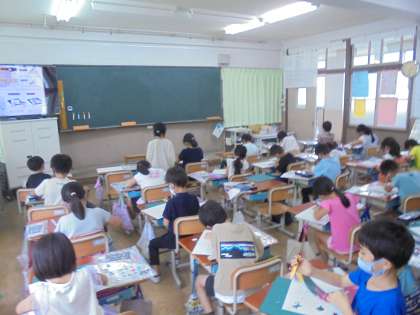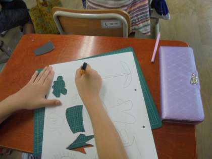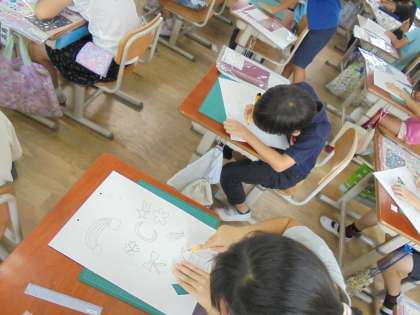 カッターナイフを使って,紙を切りました。子どもたちは緊張しながらカッターナイフを使っていました。