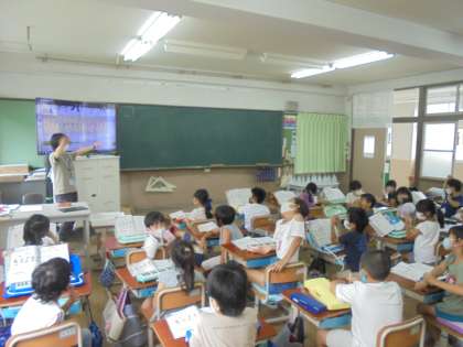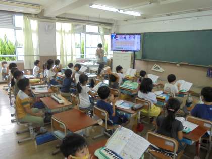 リズム譜をみながら,手でリズム打ちをすることができました。練習して合わせることができるようになってきました。