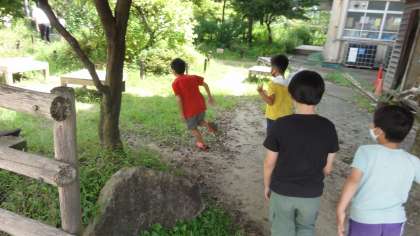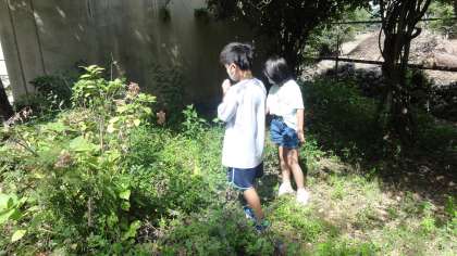 生き物係が中心になって,ネイチャーランドで生き物探し。