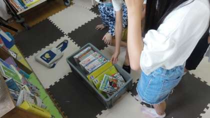 それぞれ本を借りたり,図書係は学級文庫を協力して選びました。