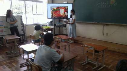ALTの先生と,夏休みの思い出について交流しました。英語も交えながら楽しく交流ができました。