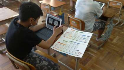 スキルタイムにギガ端末を使って,国語や算数の学習をすすめています。使い方にも慣れてきて,一人一人が集中して取り組むことができています。