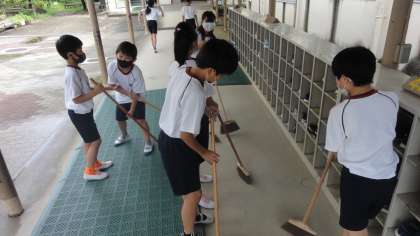 土が下にたまるので,マットをどけてキレイにそうじしています。