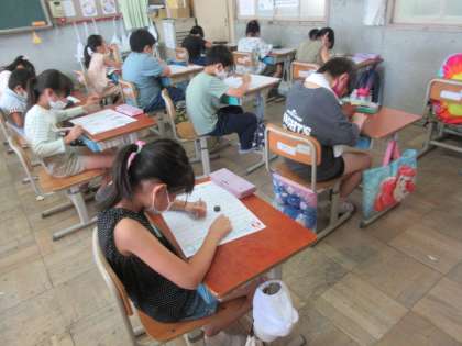 夏休み明けから予告していた漢字50問テスト。これまでの学習の成果が出せたでしょうか?自分の目標とする点数に近づけていたらいいですね。