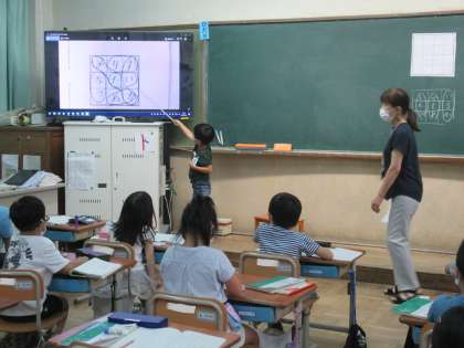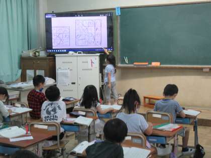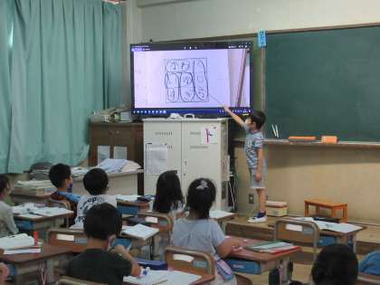たくさんの言葉を思い浮かべて表に言葉を書きました。ななめにも書きました。みんなに発表できてうれしそうです。