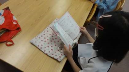 図書館で,借りた本を静かに読みました。