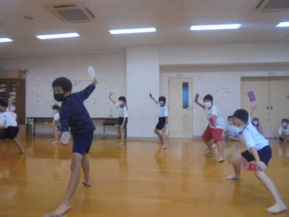 各クラスごとに細かい動きを確認しました。「上手か下手ではない!」「本気かどうかだ!!」を合言葉に常に全力で練習に励む5年生です。