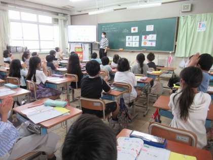 好きなものを英語で尋ねたり答えたりできるように,英語の言葉を確かめました。