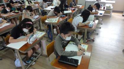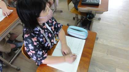 先生が黒板に書く内容を,丁寧にノートへ書けています。