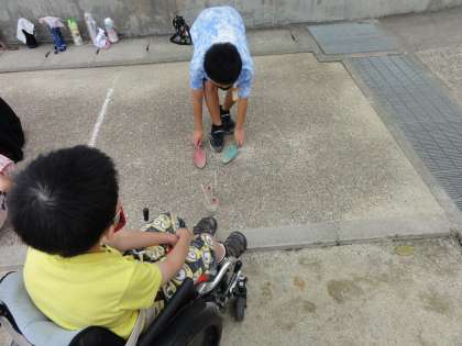 運動場と砂場の砂で,実験をしました。