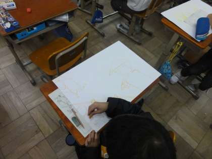 お話の絵を,画用紙に下がきしました。