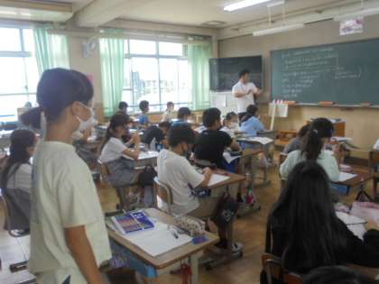 ふだんの川と大雨が降った後の川の写真を比べ,気づいたことを話し合いました。