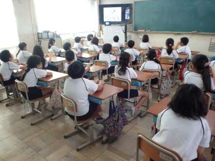 クイズ形式でのお話をしてもらい,楽しそうに聞くことができました。