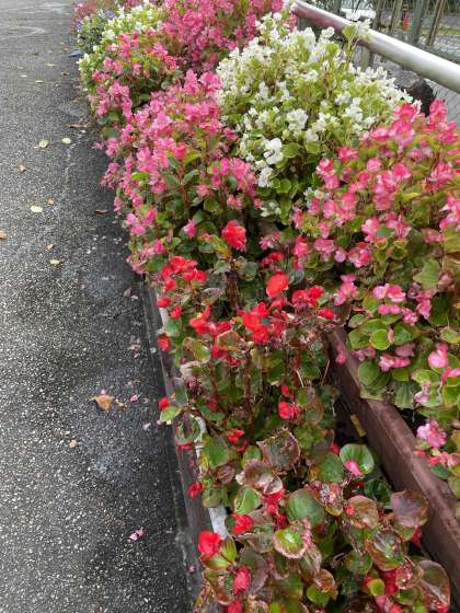 正門を入ったところの花壇の花が,とてもきれいです。この暑い夏の間も,花を咲かせてくれて,いまだに花が咲いているのは,管理用務員さんをはじめ,委員会の子どもたちも毎日,水やりを欠かさなかったからだと思います。