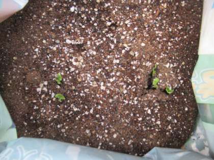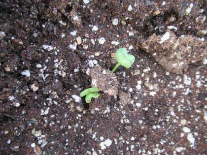 大根の種を植えて2日後,もう芽が出ました!一生懸命種を植えた子どもたちのおもいに応えるかのように,かわいい芽が出ました。