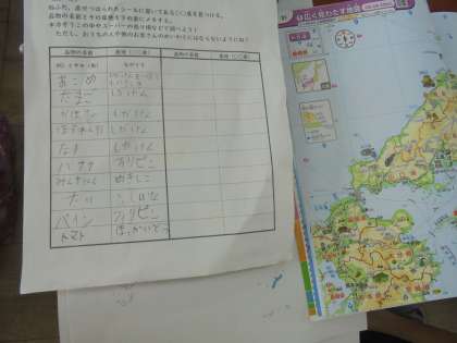 スーパーに並んでいる品物の産地を調べたことをもとに話し合って学習をしました。