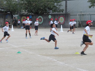 体育参観に向けて,リレーの学習をしました。熱気が高まり,応援している友達も思わず一緒に力いっぱい走りました。