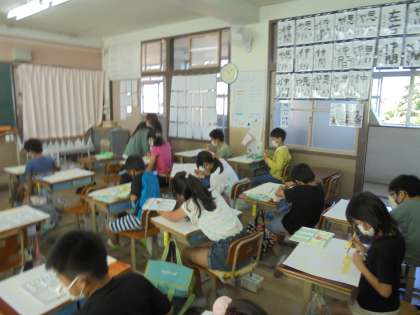 絵具を使って,下描きの線を生かして,色をしっかりと付けています。