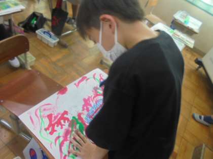 いよいよお話の絵の完成がみえてきました。最後までとことんこだわる5年生です!