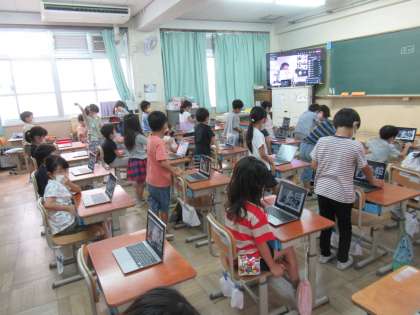 Teams会議を開き,廊下の友達とじゃんけんをしました。