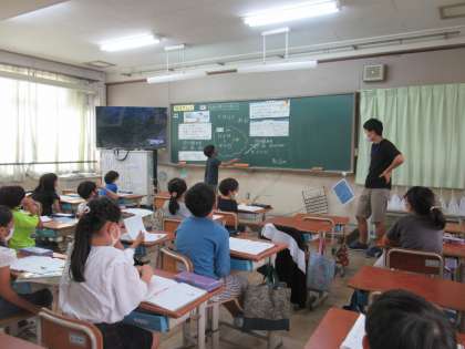 2つの教室に分かれて学習している子どもたちは,どちらの教室も真剣そのもの。がんばっています。