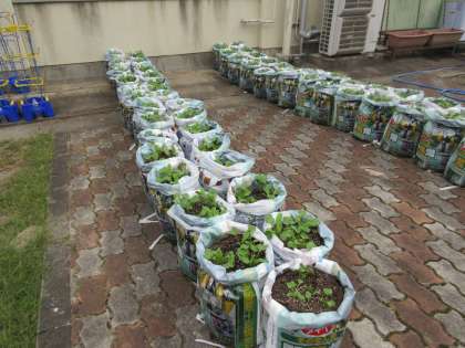 大根を植えて早2週間。10cmを超える高さに成長し,本葉も確認できるようになりました。日当たりの良い場所にも移動し,これからもすくすくと育ってくれることと思います。来週には間引きです!