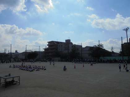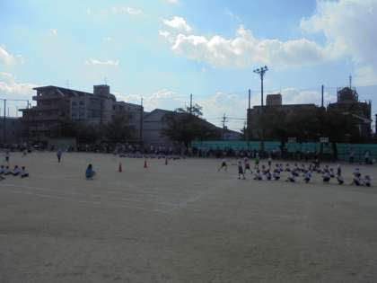 体育参観で,1年生はリレーなどを頑張りました。一生懸命,バトンをつなぐために走ることができていました。