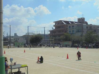 3年生の徒競走では,トラックを走り,難しいカーブを調整しながら走ることができました。