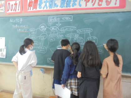 農家の人たちが作ったお米が各家庭に届けられるまでに,どのような仕事が関わり合っているのか考え出し合いました。
