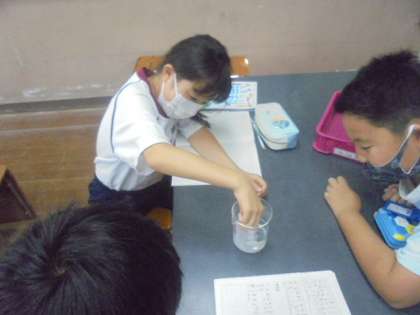 今日から「ものの溶け方」という学習が始まりました。久しぶりの理科室での学習に子どもたちはとてもうれしそうでした。