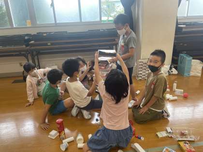 「あそんでためしてくふうして」を教室より広いトレーニングルームでやってみました。