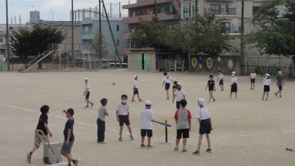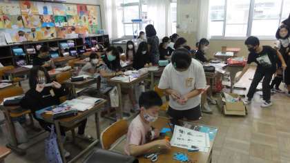 高学年の子たちと一緒に,教室や運動場などそれぞれの場所で活動を行いました。