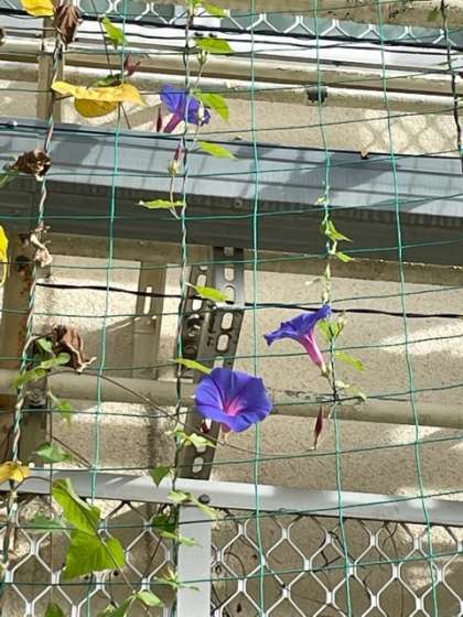 この時期になって,アサガオのオーシャンブルーの花がたくさん咲いてきました。