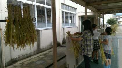 「楽しかったー!!」と,刈り取りができて大満足の子どもたちですが,私たちの食卓に並ぶにはまだまだ作業工程があります。