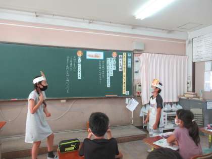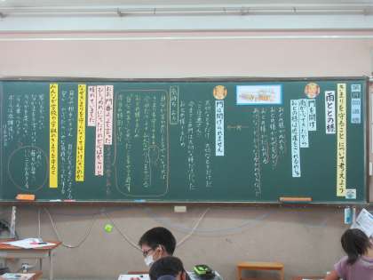 「雨ととのさま」というお話を基に,役割演技をしたり話し合ったりして,きまりを守ることについて考えました。きまりを守るということは,相手や自分のことを考えたことであり,自分も相手もいい気持ちになることに気づきました。登場人物が,自分の考えを貫き通した姿が「すごい」ということにも気がつきました。