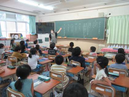 地震の時の避難の仕方を考えました。どのような危険があるのか,しっかり話を聞いて考えることができました。