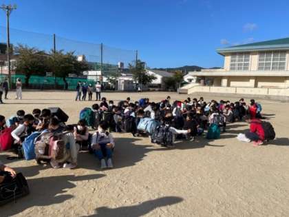 出発式で,学習してほしいことを確認して,予定通り,子どもたちは学校を出発しました。