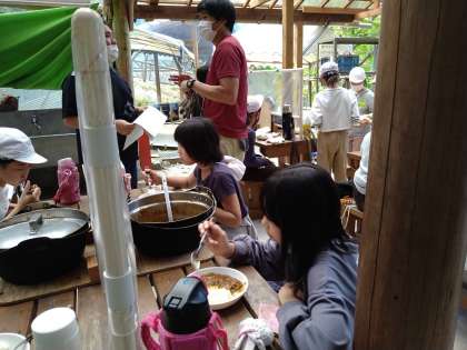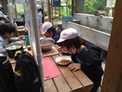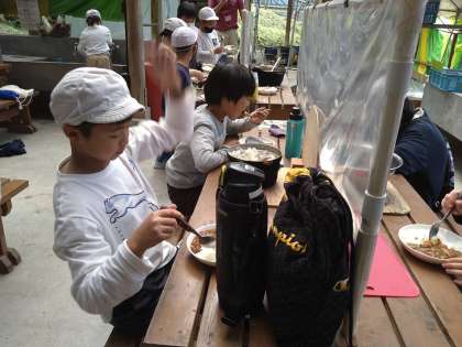 おいしいカレーができあがりました。子どもたちが「においだけでわかるわ。うまいにきまってるやん」と言っていました。