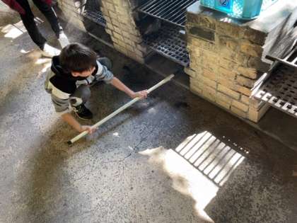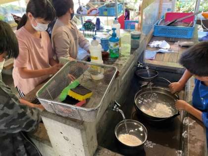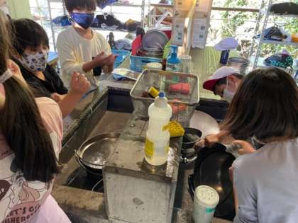 食事の後の後片付けを行っています。