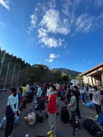 退所式で,花背山の家の所員の方々に御礼を告げて,そのあと,バスで学校へ戻ります。
