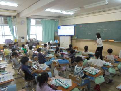 1年生 音楽科「けんばんハーモニカとなかよくなろう」