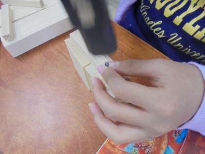 丁寧に指でもって,くぎを打つことができていました。