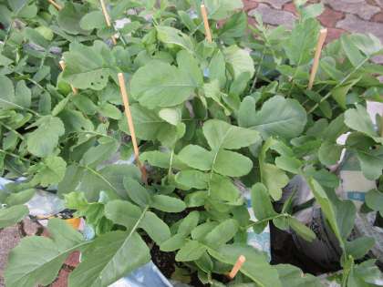 間引きをして2週間。大きく成長してきました。虫よけ対策のネットの中で少し窮屈そうにしています。
