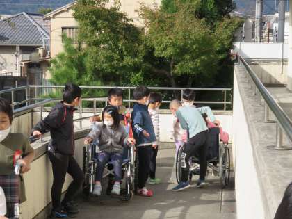 鳴滝総合支援学校から車いすをおかりして,車いす体験をしました。