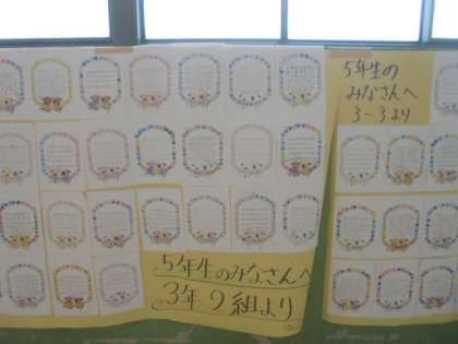3年生から5年生へ発表会の感想が書かれたメッセージカードが届きました。みんなうれしそうに読んでいました。