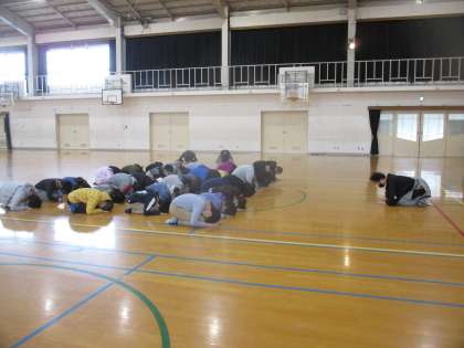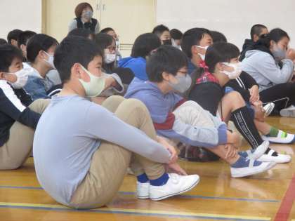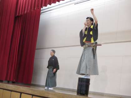 文化芸術授業の一環で講師をお招きし,狂言を体験させていただきました。本物の狂言に触れ,子どもたちは狂言の魅力や楽しさに感動していました。普段の授業では中々味わえない,貴重な時間を過ごすことができました。