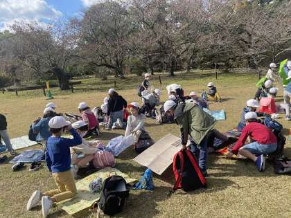 子どもたちは,広場で楽しみのお弁当を食べました。