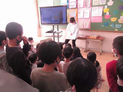 小泉先生から,ことばときこえの教室はどんな勉強をするのかを教えてもらい,教室にある道具を見せてもらいました。