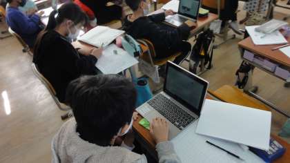 GIGA端末を使って,伝統工芸のリーフレットを作成するための調査をしました。