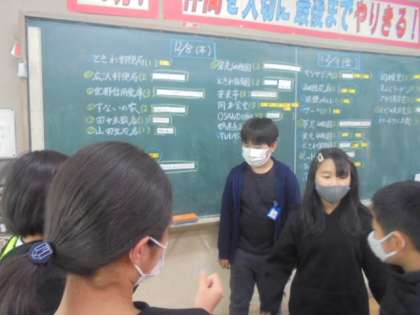 総合的な学習の時間に「仕事」や「働く」ことについて考える学習をしています。12月には,地域の職場見学も予定しています。今日は各クラスで誰がどこに見学に行くかを話し合って決めました。